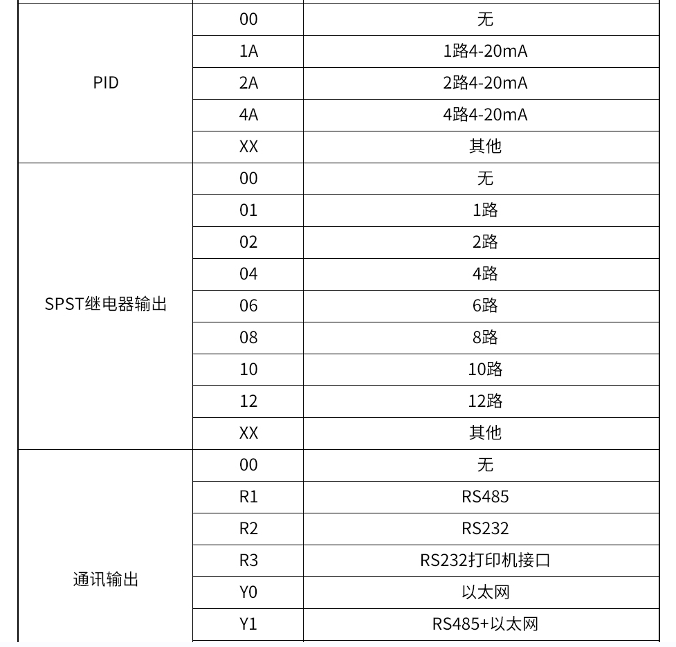 模拟量输出:4-20mA(选配)