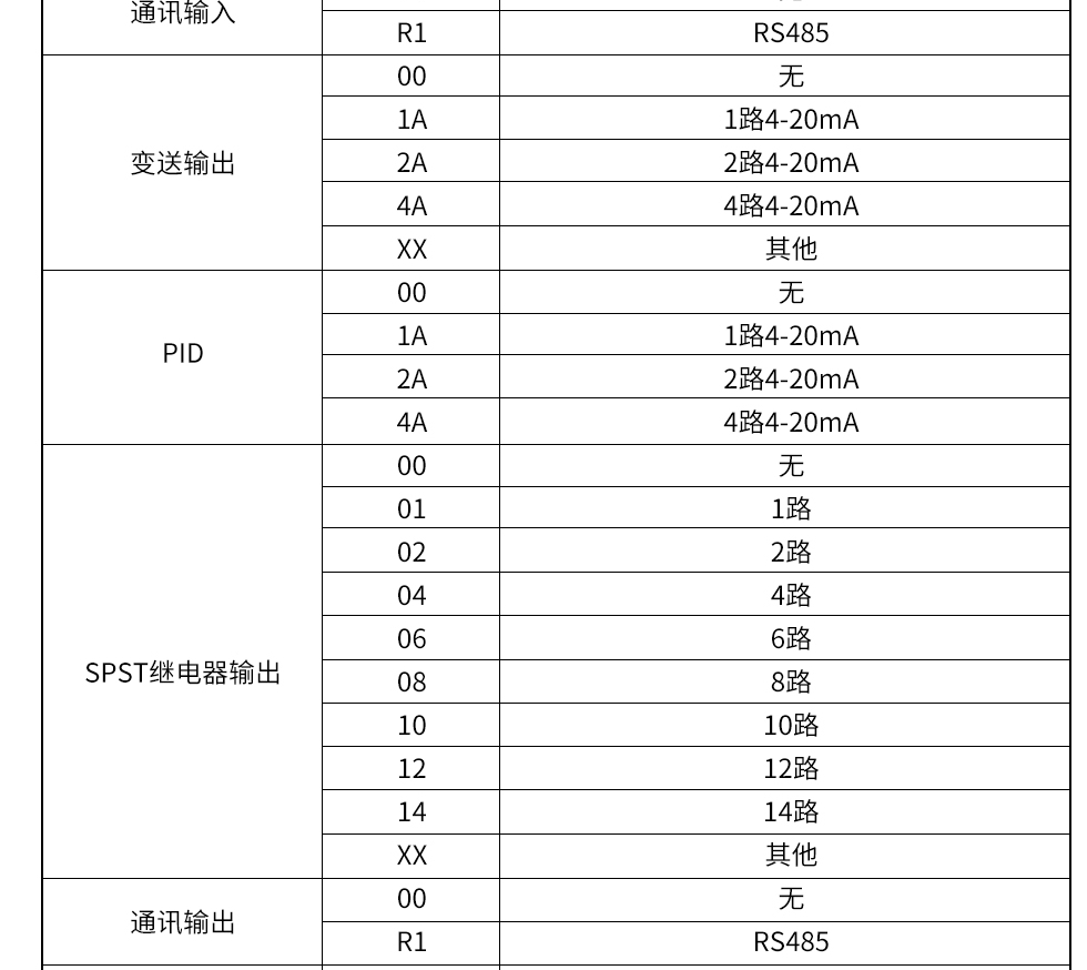 4、8路报警输出、1路模拟量输出、1路配电输出可选、2路485信号