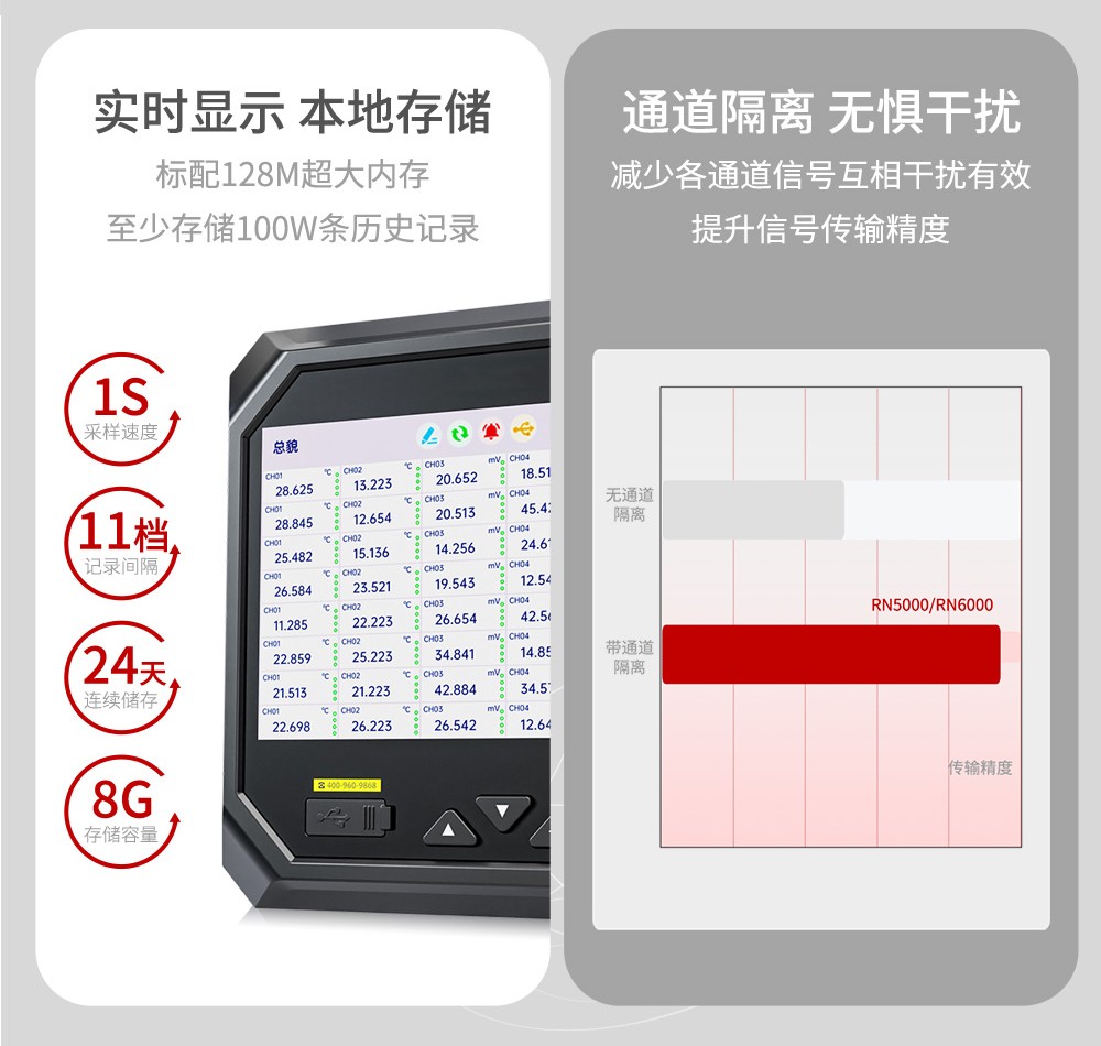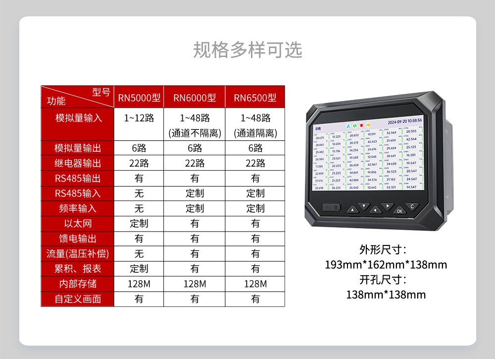 本产品为工业无纸记录仪,配置分辨率为 1024*600 的 7 英寸 TFT真彩全视角液晶显示屏。可以接入电流、电压、热电偶、热电阻、电阻和频率(定制)等多种类型工业标准信号,实现温度、湿度、压力、液位、流量的显示、记录、超限监控、报表、数据通讯、信号变送以及流量累积、流量温压补偿等功能。可应用于冶金、石油、化工、建材、造纸、电力、食品、制药、工业水处理等行业。咨询热线:400-152-1718